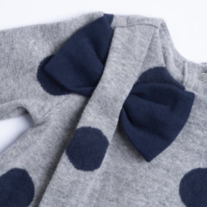 Φόρεμα πλεκτό γκρι με μπλε πουά και φιόγκο από την εταιρία Chicco .
