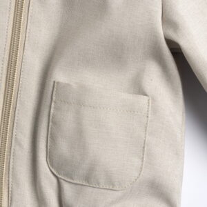Μπουφάν λεπτό εκρού σε καλοκαιρινό ύφασμα, από την εταιρία chicco. Διαθέτει αποσπώμενη κουκούλα.