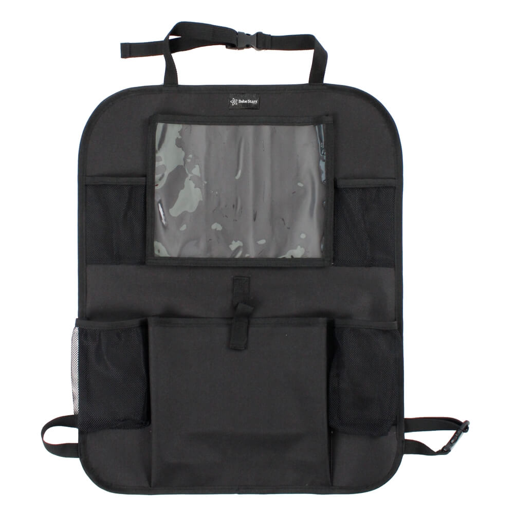 Οργανωτής πλάτης καθίσματος αυτοκινήτου. Προστατεύει τα καθίσματα από βρωμιές και γρατζουνιές. Διαθέτει πολλές θήκες για αποθήκευση αντικειμένων και μία διάφανη θήκη για τοποθέτηση iPad. Εύκολη τοποθέτηση με κλιπς ιμάντα. Ταιριάζει σε όλα τα καθίσματα αυτοκινήτου.