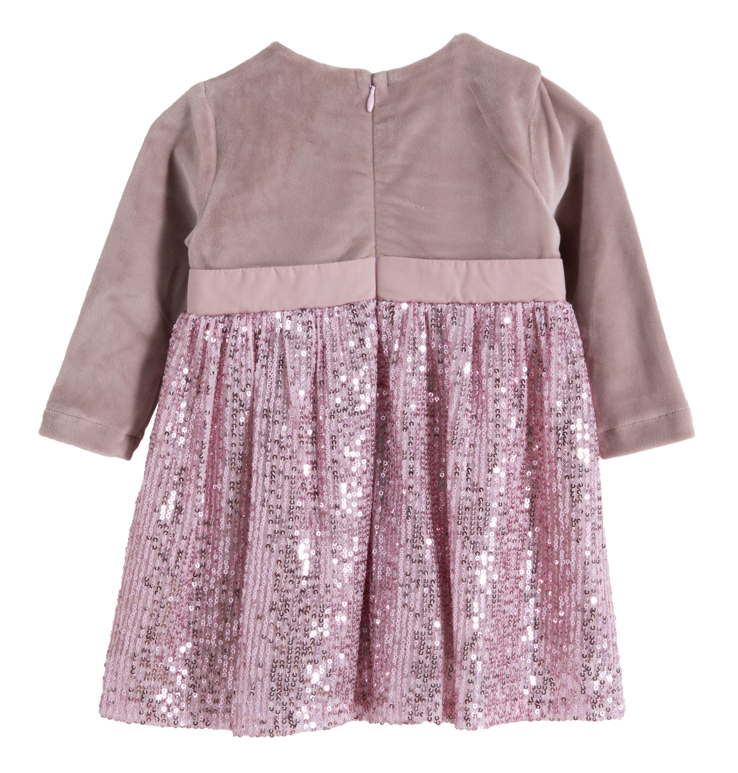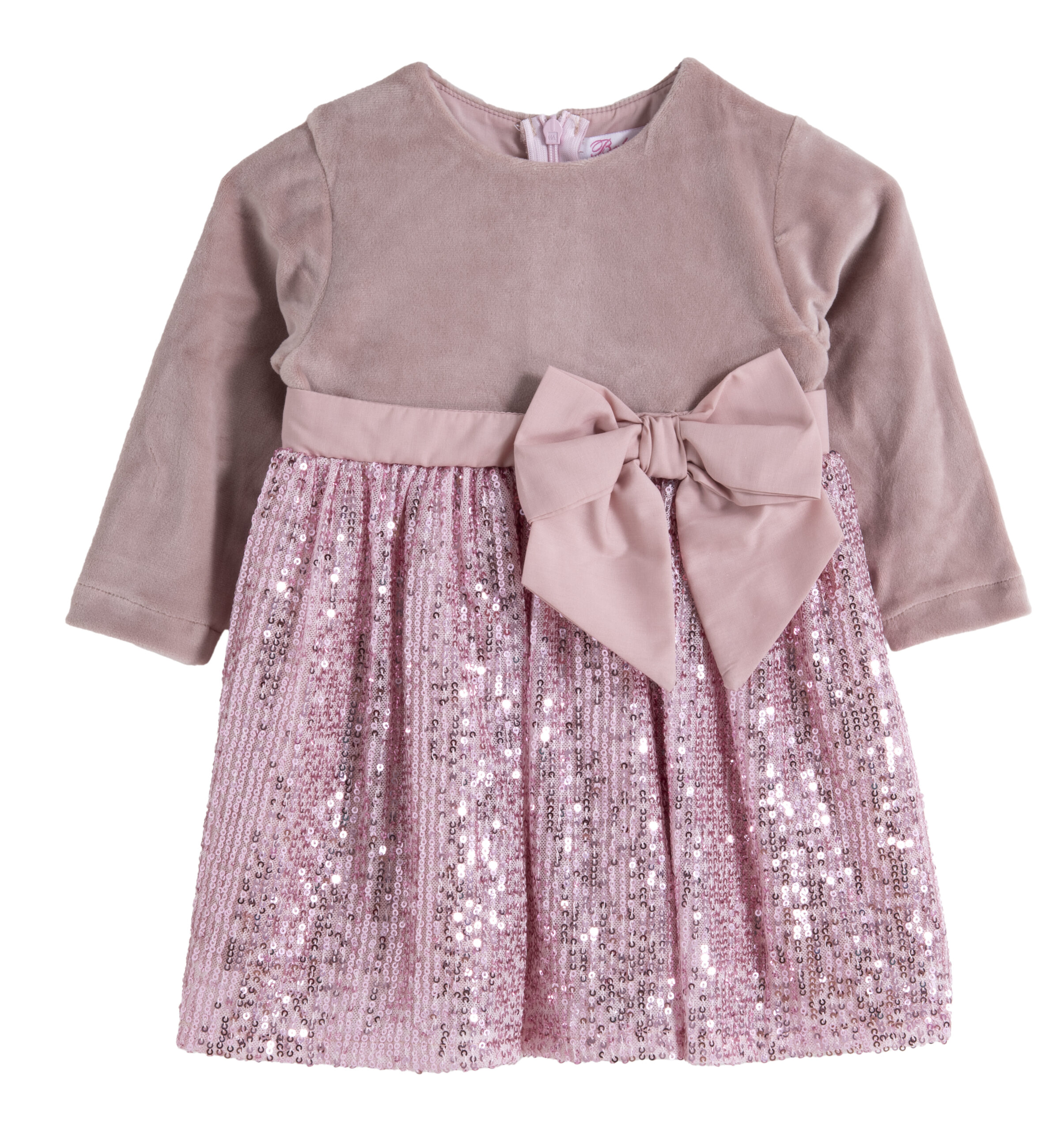 Φόρεμα βελουτέ στο πάνω μέρος και παγιέτα στο κάτω με φιόγκο στη μέση και ζακέτα βελούδινη